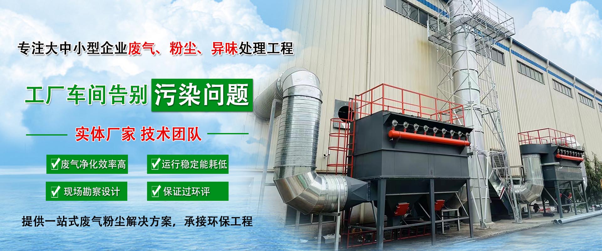 • 工廠廢氣治理涵蓋有機(jī)廢氣,噴涂廢氣,酸堿廢氣等各類工廠廢氣的治理。